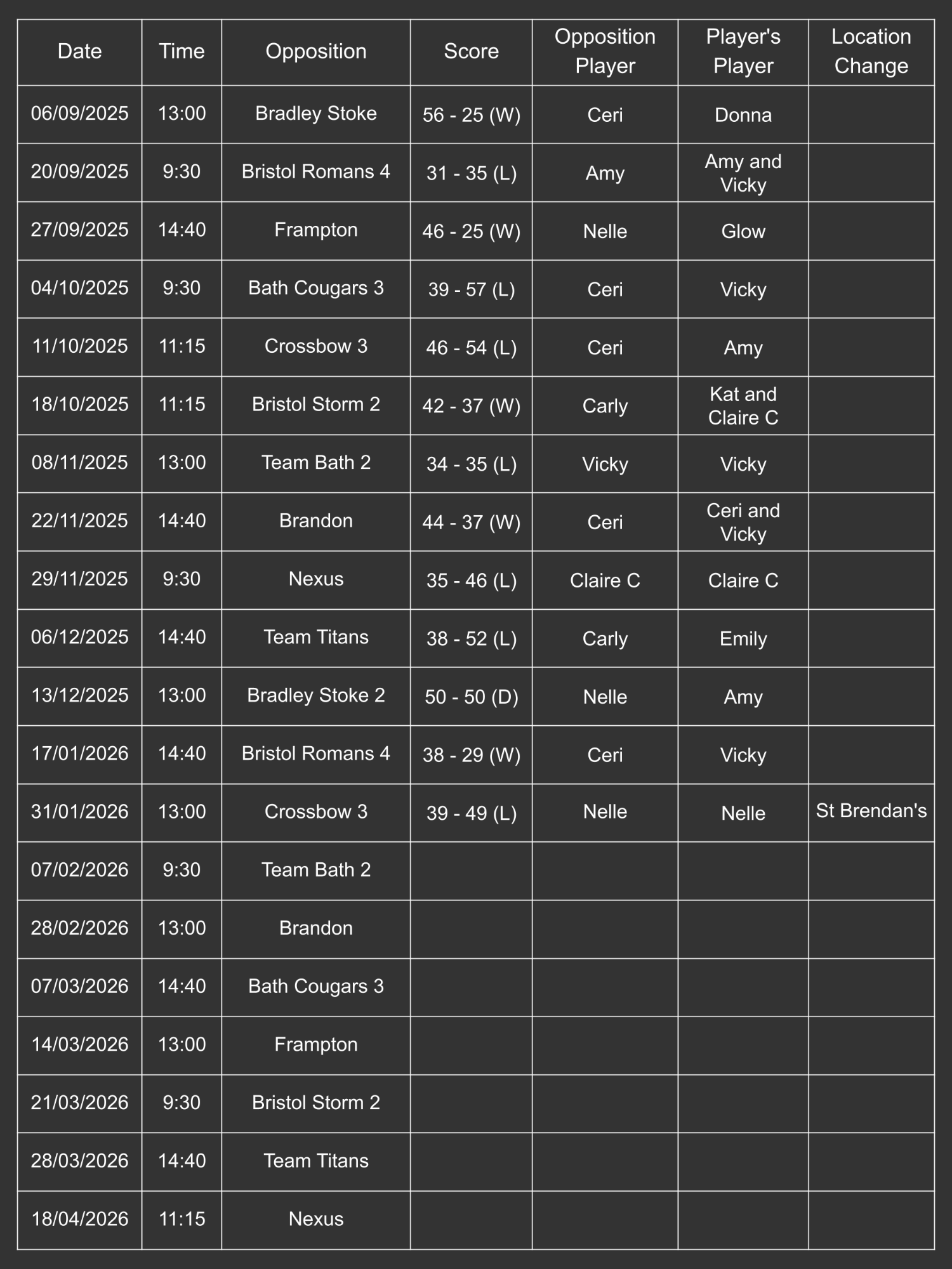 Fixtures 2025/26 - Division 2